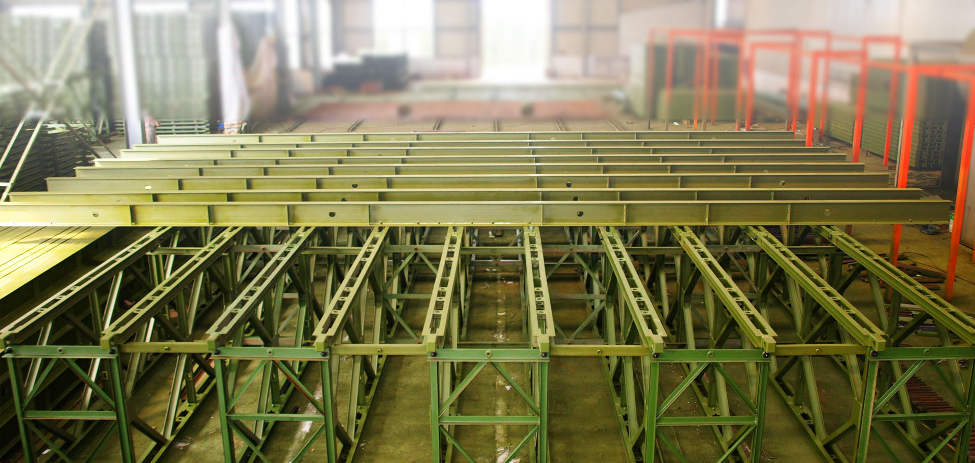 國(guó)內(nèi)專(zhuān)業(yè)生產(chǎn)貝雷鋼橋較大企業(yè)之一。公司擁有貝雷鋼橋研發(fā)專(zhuān)業(yè)工程技術(shù)人員20余人,擁有能指導(dǎo)、執(zhí)行行業(yè)標(biāo)準(zhǔn)的人才和國(guó)內(nèi)先進(jìn)的制造工藝。目前已開(kāi)發(fā)出各種高抗彎、高抗剪貝雷桁架梁新產(chǎn)品,滿足公路—I級(jí)、城—A級(jí)、HS25(美國(guó)荷載標(biāo)準(zhǔn))、HA(英國(guó)荷載標(biāo)準(zhǔn))等荷載要求。經(jīng)實(shí)際運(yùn)用,為大型工程施工中的超汽60、掛100車(chē)輛的通行發(fā)揮了巨大作用。